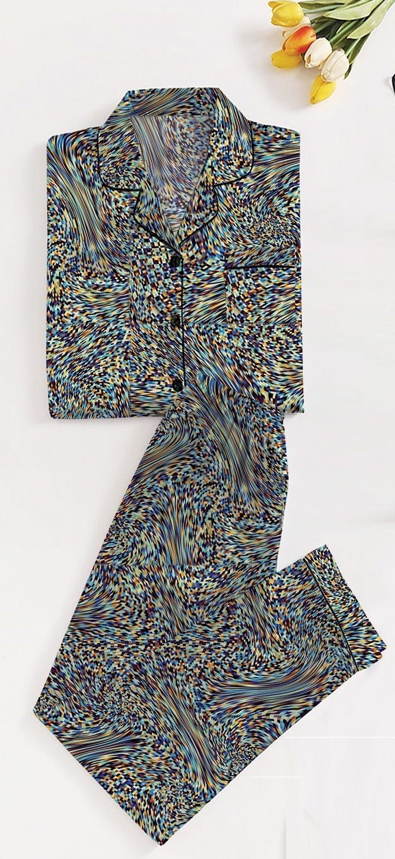 Experience luxury and comfort with the Green Leopards Loungewear, crafted from smooth silk for a gentle touch on your skin. Its vibrant green leopard print adds a bold, stylish flair, perfect for lounging or a restful night’s sleep. This nightsuit combines elegance with breathable softness, making it your go-to choice for relaxing at home or unwinding with effortless sophistication.